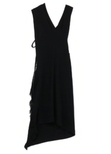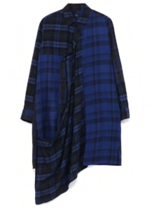 W/GABARDINE CHECK ASYMME APRON DRESSS