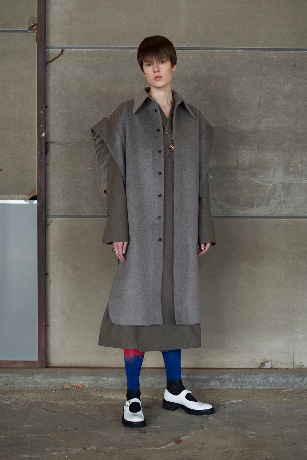 COLLARLESS CASHMERE BLENDED WOOL JACKET/COAT