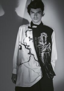 顔 - 画家 朝倉優佳、内田すずめによる「表と裏」「光と闇」「理性と本能」「真実と嘘」など、相反する人間の二面性を様々な独自の手法で表現した作品の数々。より一層大胆で強いメッセージをプリントしたアイテムは山本耀司による手描きメッセージやアートモチーフと相俟って、私たちを狂的陶酔へと誘う。
