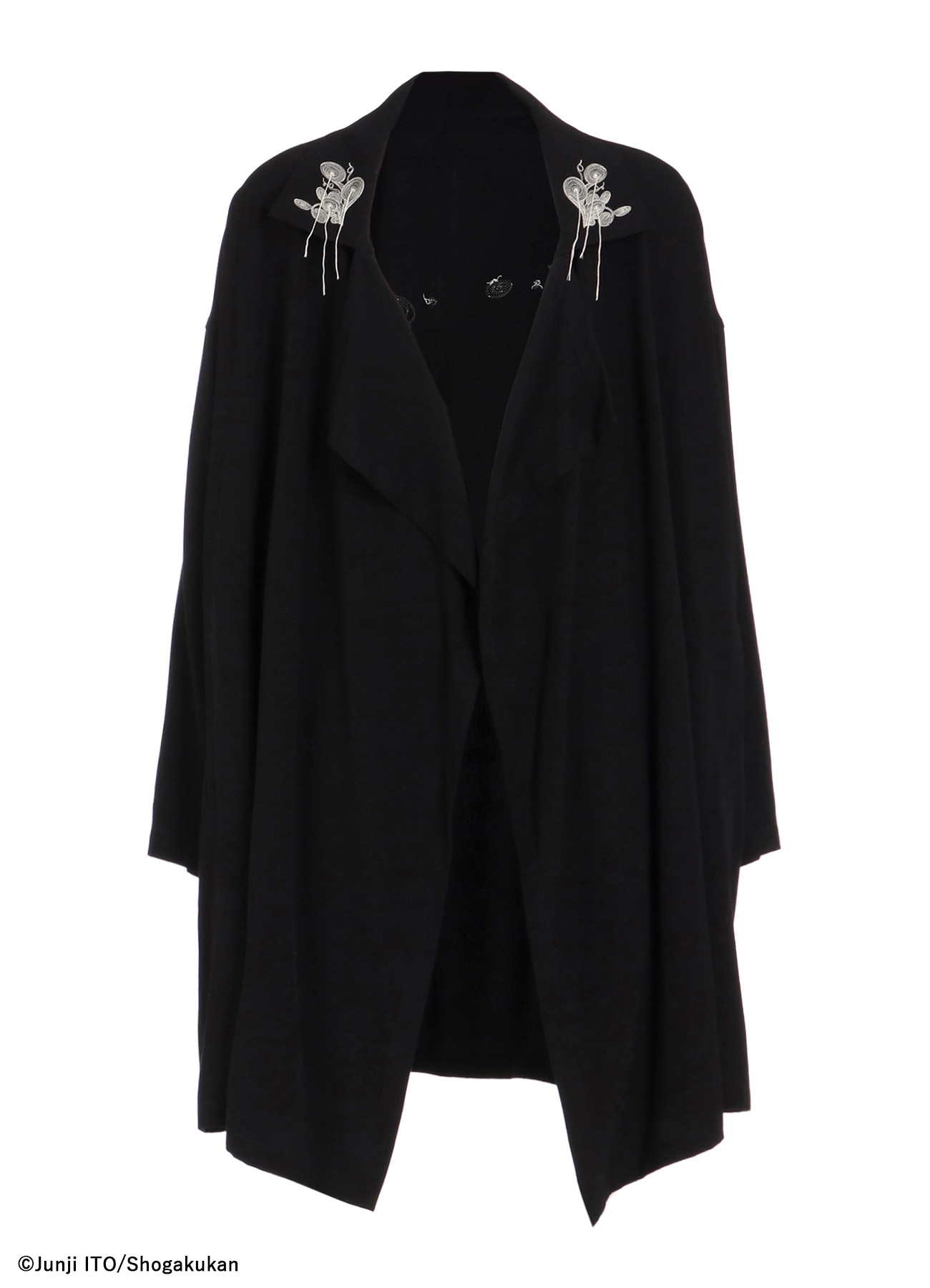 『うずまき』作中で、黒谷あざみの人気の原点ともなったシーンを大胆な構図で刺繍したボンバージャケット。本コレクションの中で最もホラーテイストが強く、伊藤潤二氏の世界観を余すことなく表現した一着。