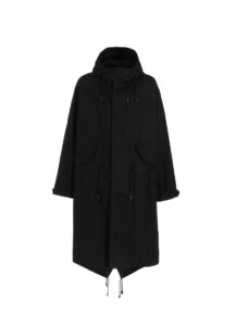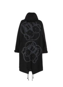 また、WILDSIDEの定番素材であるコットンチノ生地で仕立てたモッズコートやジャケット、パンツにもエアブラッシュ表現によるCHITOのアイコニックな犬のモチーフをプリントで大胆にレイアウト。リフレクティブインクを採用したプリントは、黒の深みと調和しながらも存在感を放つ仕上がりとなっています。