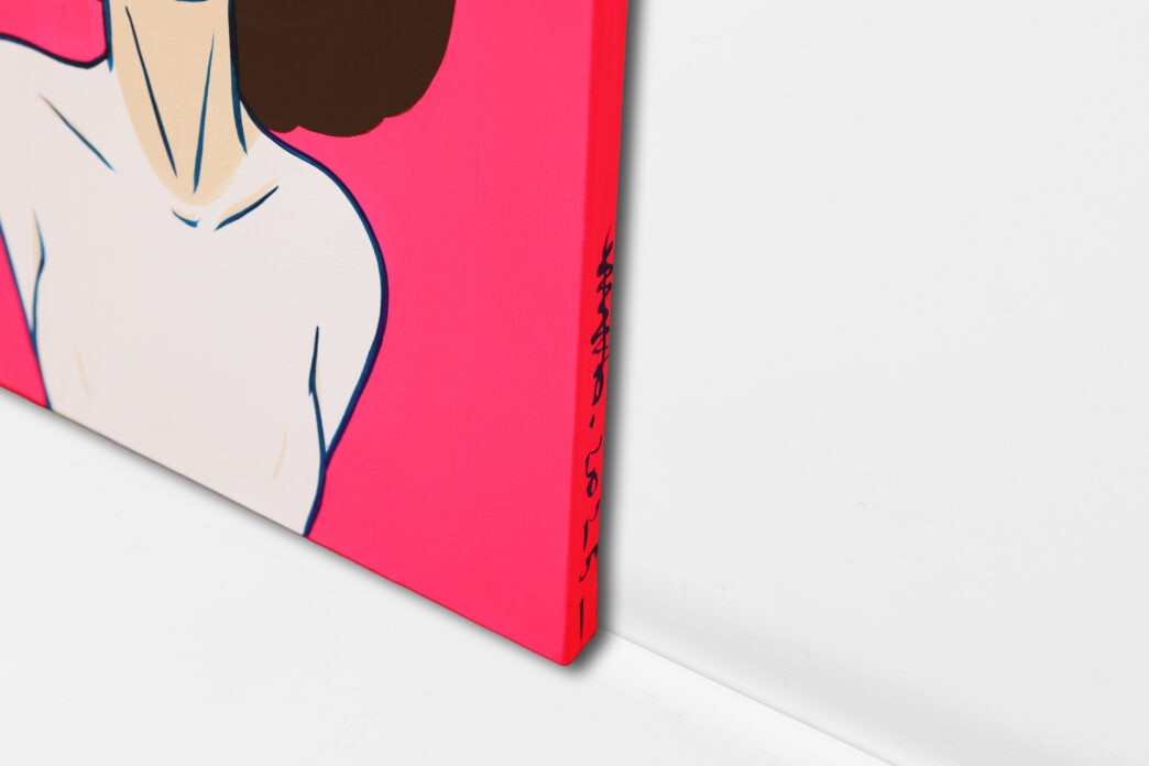 天野氏の作品は、明快な色彩に、極限まで簡略化された線で描く人物画やはかなさを表した作品などが特徴的で、今回発売する「VENUS on pink_1」「VENUS on pink_2」は鮮やかなピンクを背景にしており、WILDSIDEエクスクルーシブ作品となっております。