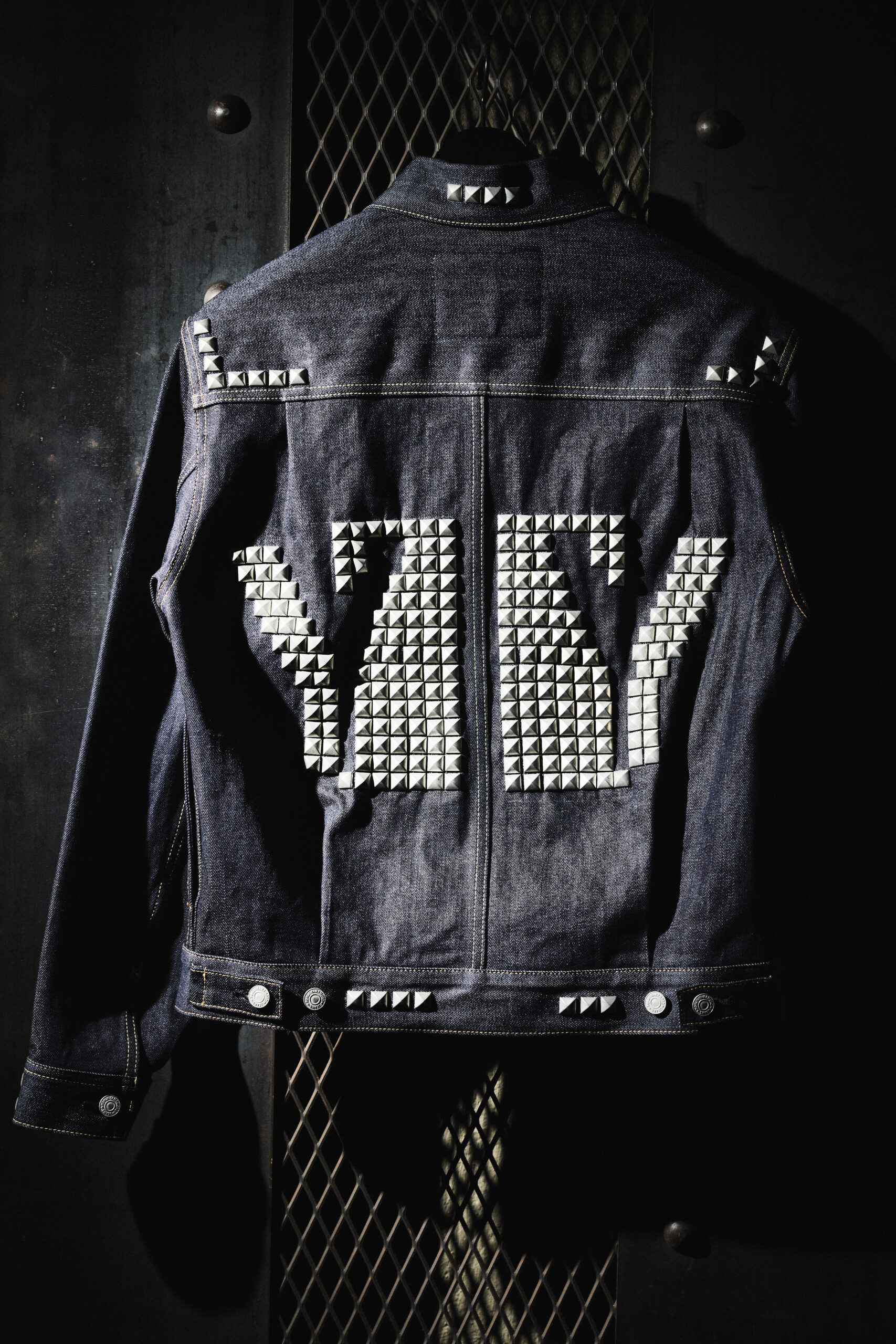 本作はインディゴおよびブラックの2色で展開。Yohji Yamamoto POUR HOMMEの2nd型デニムジャケットをベースに、Zip氏によるデザインアレンジを施したピースです。ハンドメイドによる緻密なスタッズワークが、ラグジュアリーな佇まいの中にパンクのニュアンスを内包した表情を生み出しています。
