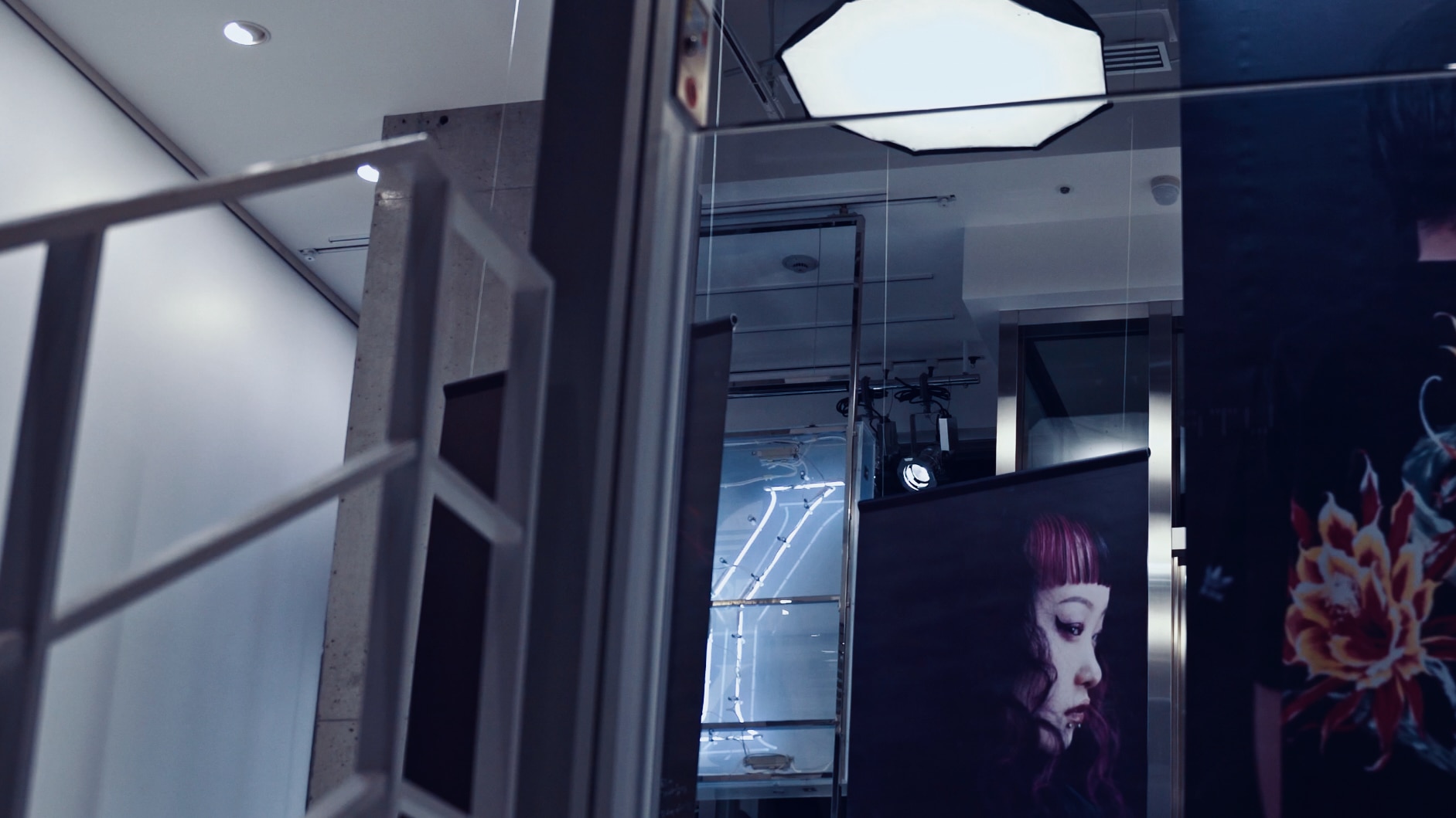 Y’s表参道を象徴するネオンサインは「Y’s x adidas」にジャックされ、それを起点に、3本の綾が、イメージを経由し、FLIP-DOTSの中に入り込み、地下フロアへ流れていきます。