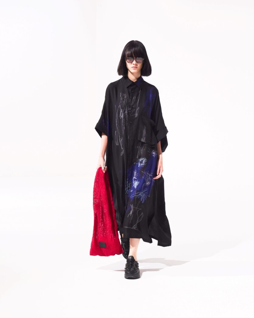 荒々しい花たちを表現したドルマン型のシャツドレス。袖はカフスを一折することで、軽やかな抜け感を添える。L28