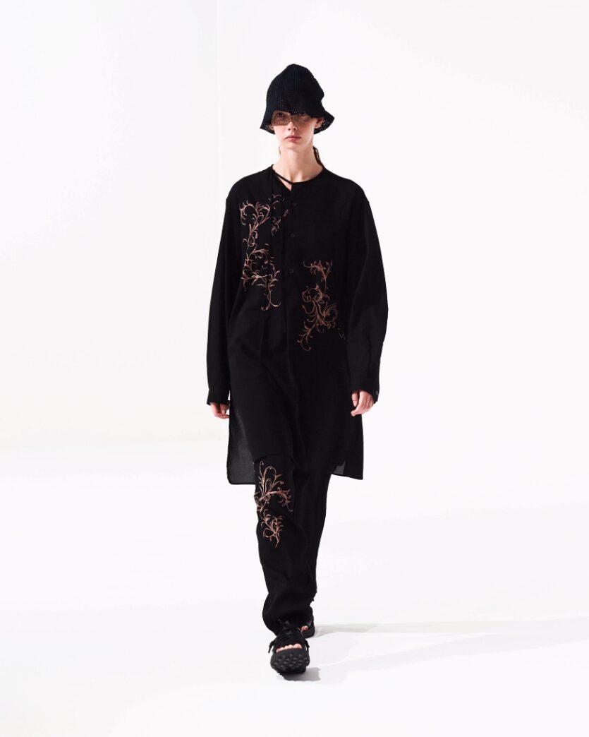 リゾートを思わせるボタニカル刺繍柄。Y’sとYohji Yamamotoの刺繍が隠れ、エスニックとピンクの色彩が軽やかさと開放感を演出する。L51