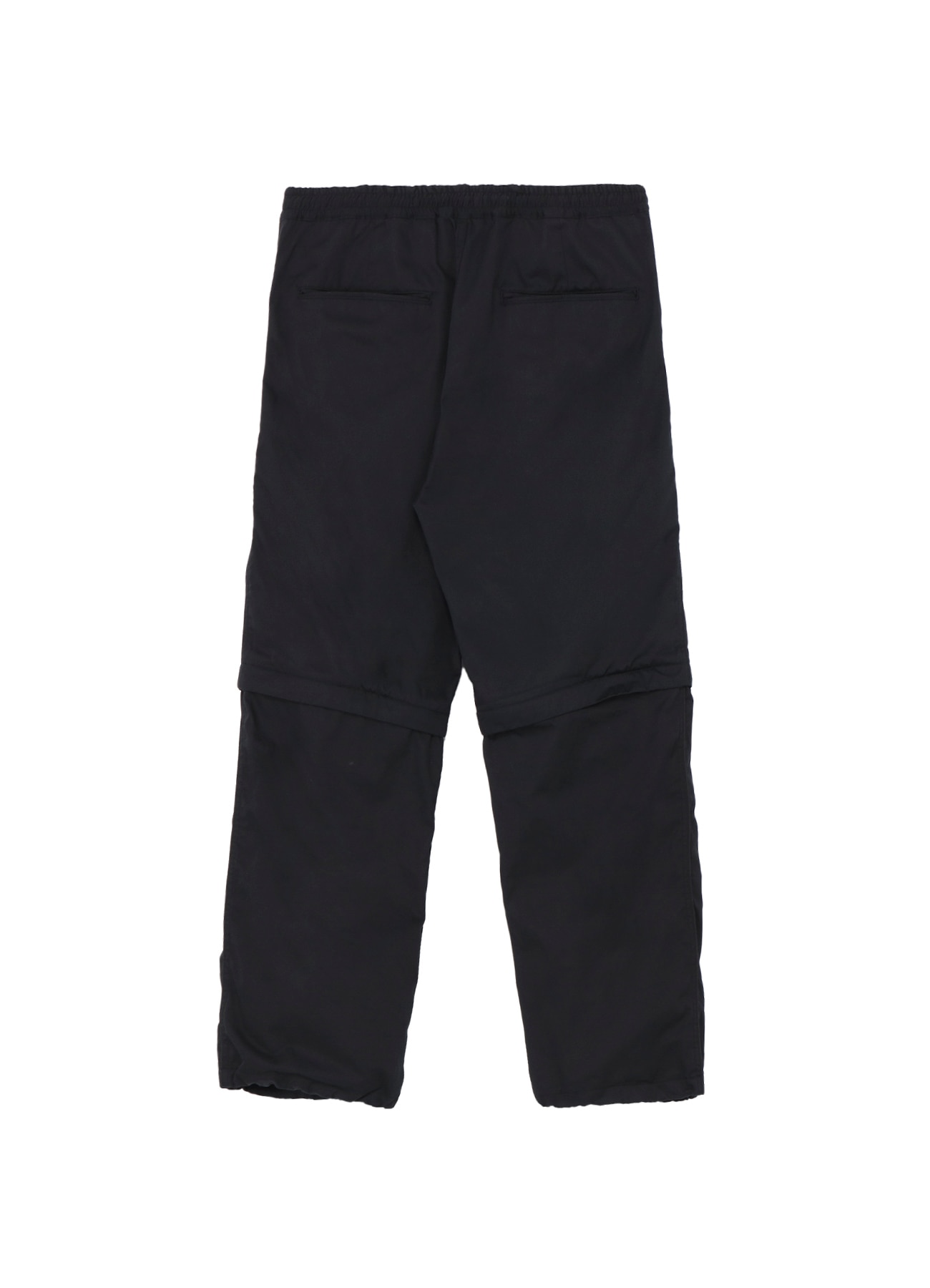 デタッチャブル仕様でショーツ・フルレングスの2WAYで着用可能なチャイナパンツは、簡素な仕立てが特徴的なワークウェアをモチーフにしながらも、愛着を持ち永く着用できるように、巻き縫いやパイピング始末といったタフで丁寧な縫製仕様にカスタムした、こだわりの詰まったセットアップウェアです。